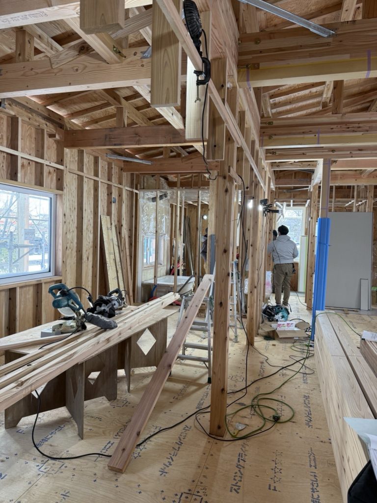 ユニットバスの組立ても始まり、現場は好調に進んでいます。